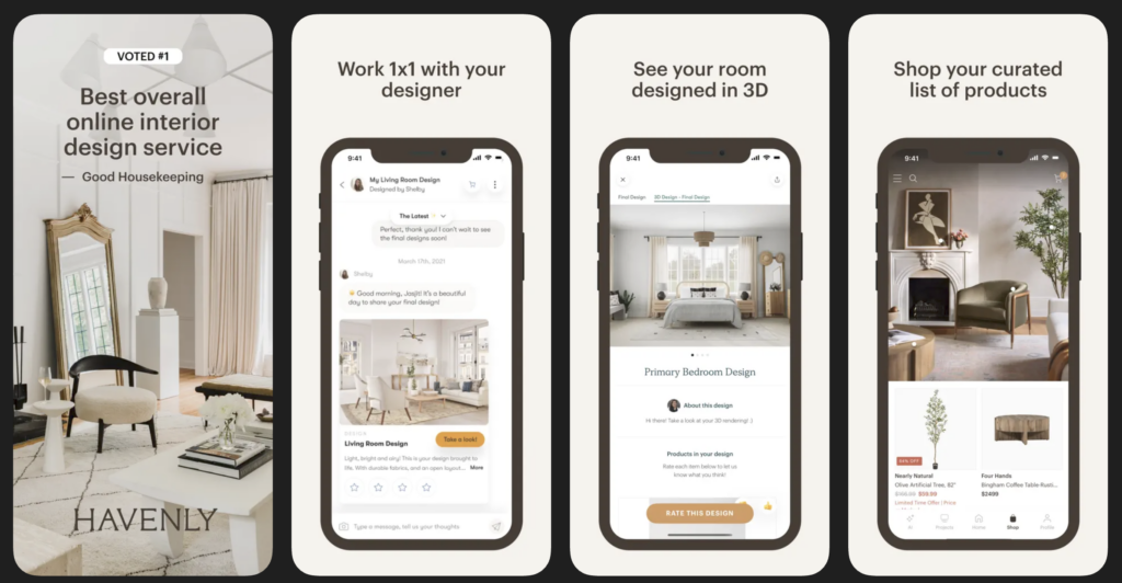 Havenly blends DIY creativity with access to real interior designers. Hobby decorators can browse styles, take quizzes, create mood boards, and — if they choose — work with a designer for personalized guidance. Even without hiring a designer, the app offers excellent style references and curated inspiration.