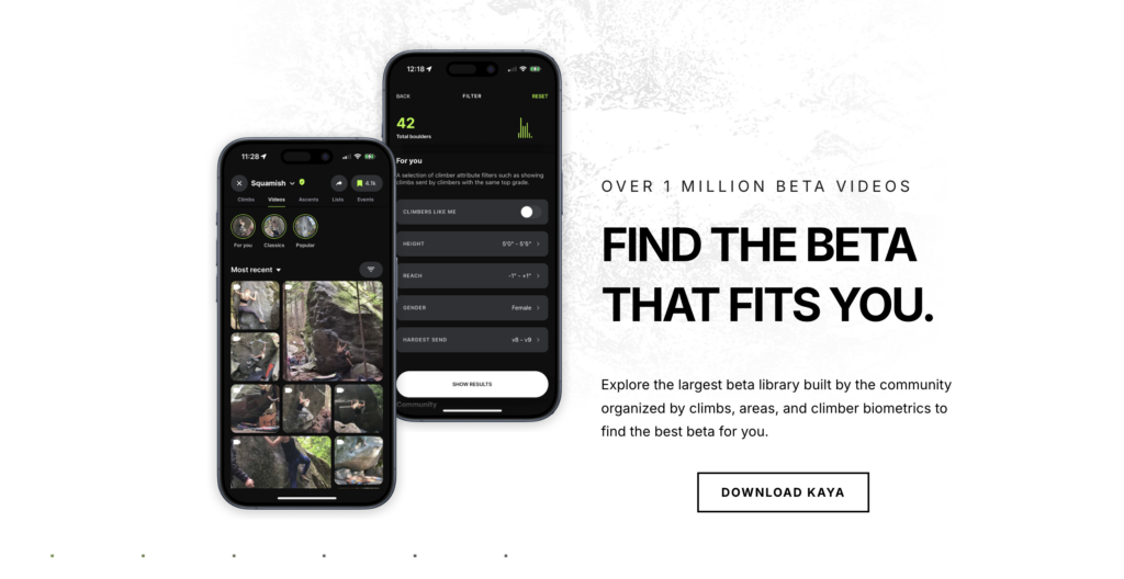 For hobby climbers who love bouldering gyms and want to feel connected to the local scene, Kaya is an incredible resource.