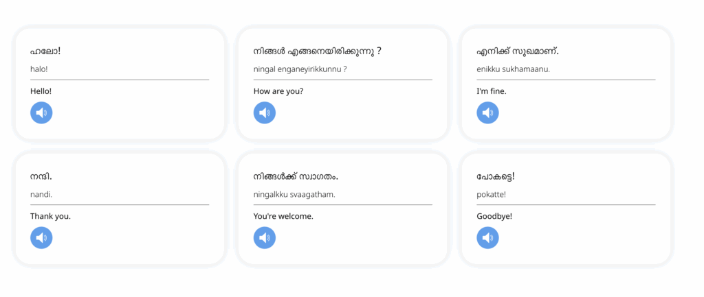 Every word and phrase is recorded by native Malayalam speakers, ensuring that you hear correct pronunciation, tone, and rhythm from day one.